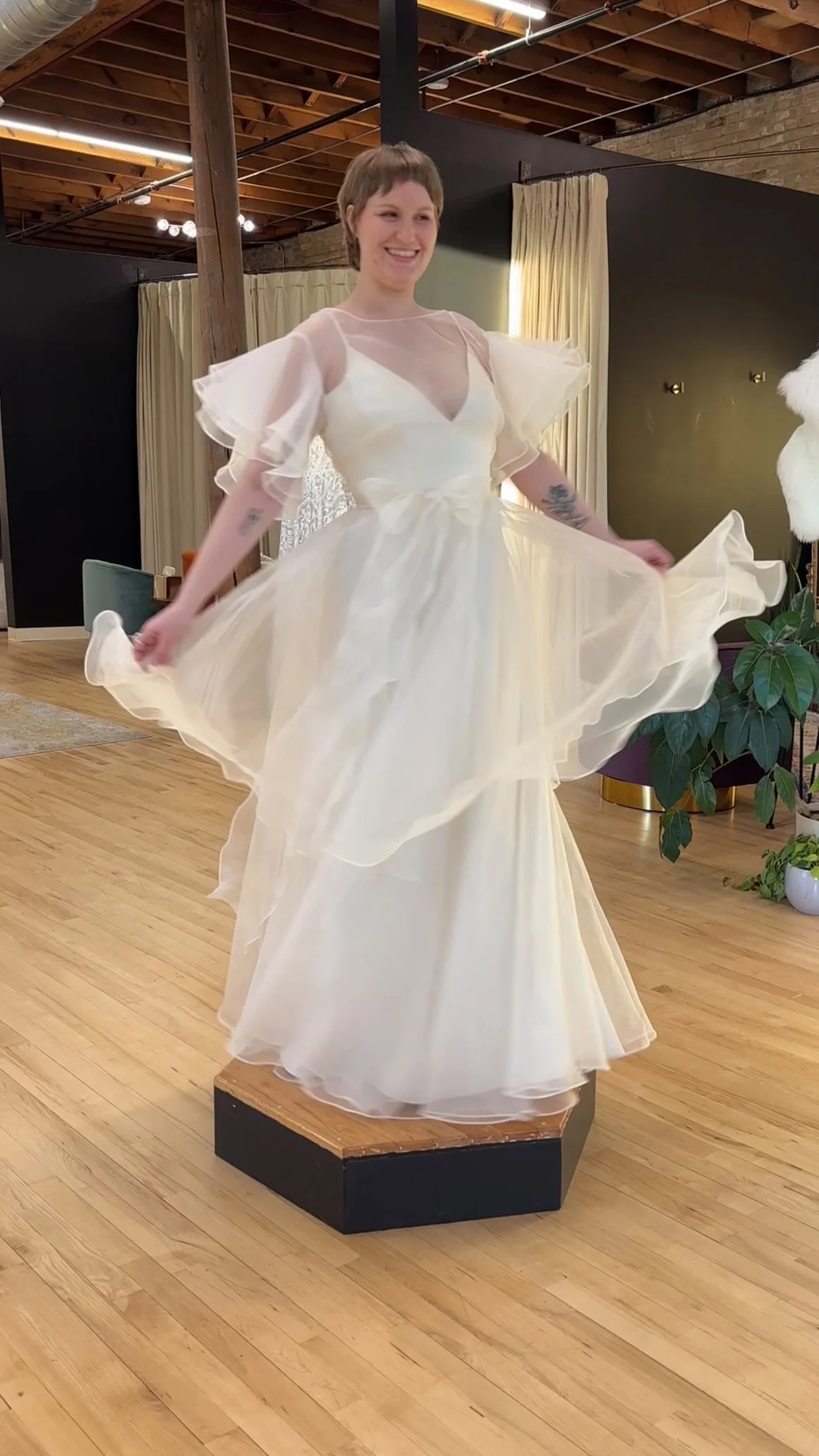 “I had an excellent experience finding my dress at strike. the staff were extremely queer friendly! I loved that they all used the correct pronouns for me and asked consent whenever touching my body. overall, I felt really safe and it helped me have fun! couldn’t have asked for anything else being a gender non-binary bride!”