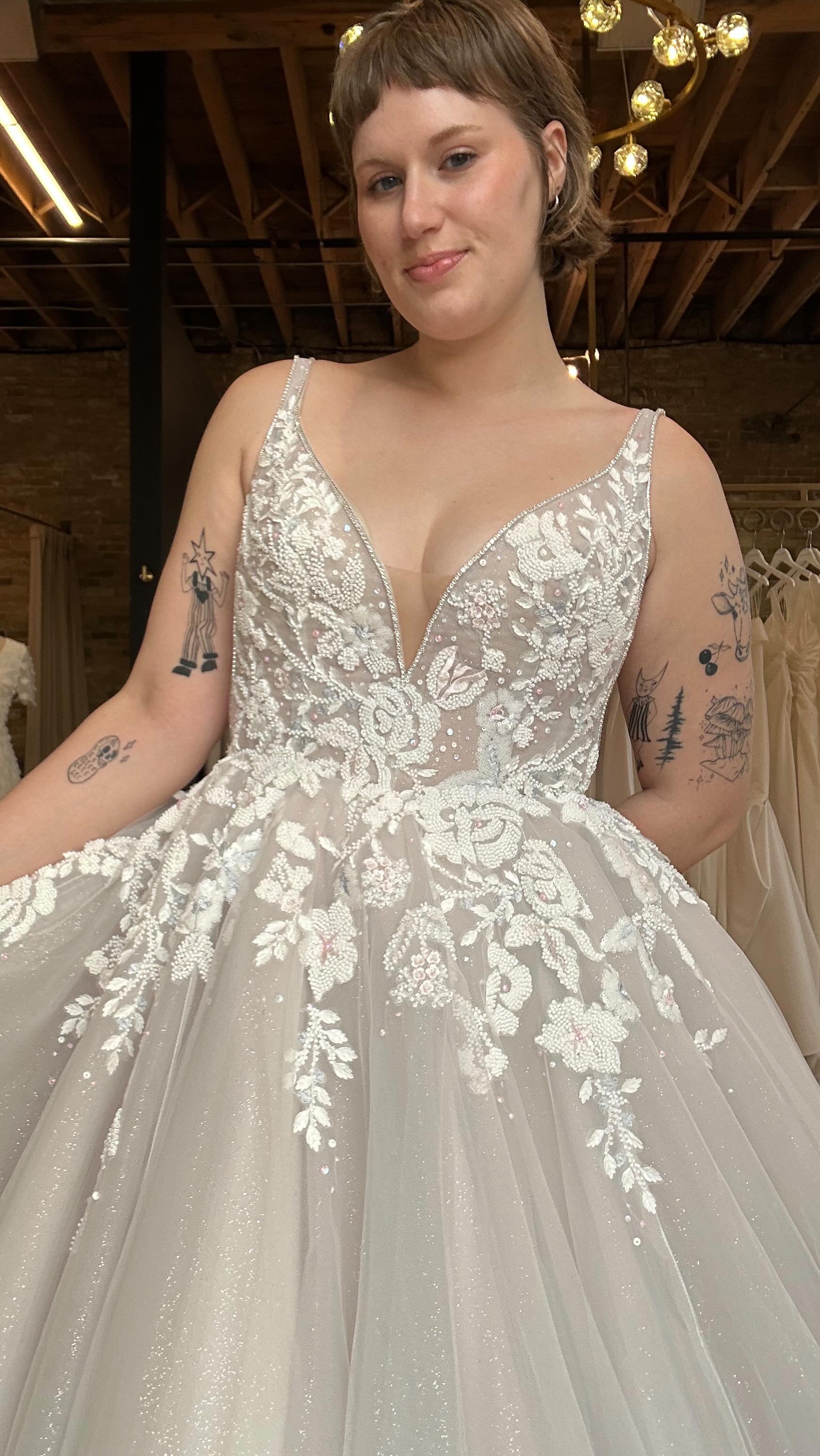 βI had an excellent experience finding my dress at strike. the staff were extremely queer friendly! I loved that they all used the correct pronouns for me and asked consent whenever touching my body. overall, I felt really safe and it helped me have fun! couldnβt have asked for anything else being a gender non-binary bride!β