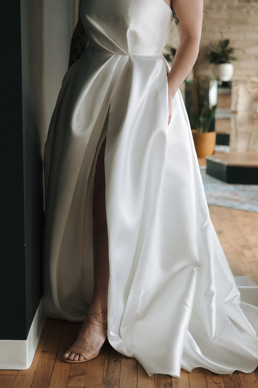 the task of creating a wedding budget is a daunting one, but is SUPER important before starting to book vendors and of course, order your wedding dress. make sure you have the conversation about budget with whomever you need to before coming in for your bridal styling appointment. our best advice is to decide on a total wedding budget first, that final number you want to spend when all is said and done. from there, be flexible to shift the budget around in and out of different categories depending on what is most important to you. maybe the dress budget you initially had in mind, will not be able to give you the fully beaded silk gown you always envisioned yourself in. instead of being disappointed and settling for something you don’t love, you can select smaller centerpieces, do an e-vite instead of paper invitations, etc. to get the dress you love. on the other hand, we understand the dress may not be the #1 priority for every bride, which is why we offer sample gowns for a discounted price so you can splurge on the items that matter most to you!