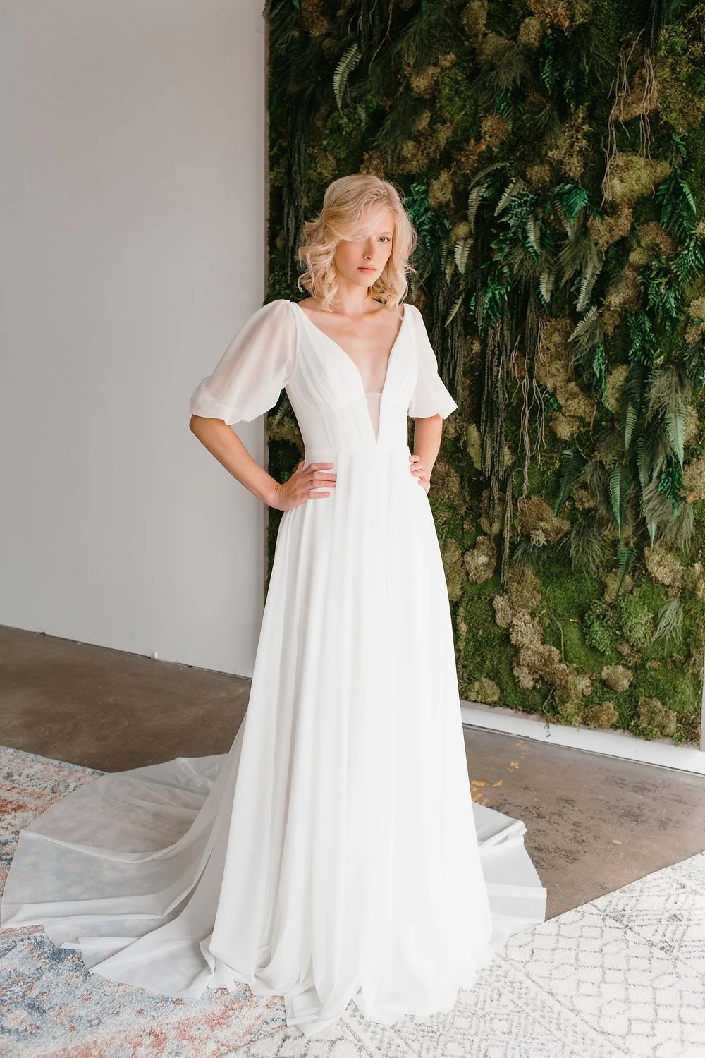 a favorite among cool, style-savvy brides, tara latour creates wedding dresses that feel fresh, confident, and true to the wearer, even on a day rooted in tradition. every gown is ethically produced using couture techniques in her minneapolis atelier, ensuring impeccable fit, exceptional quality, and thoughtful craftsmanship in every detail.
